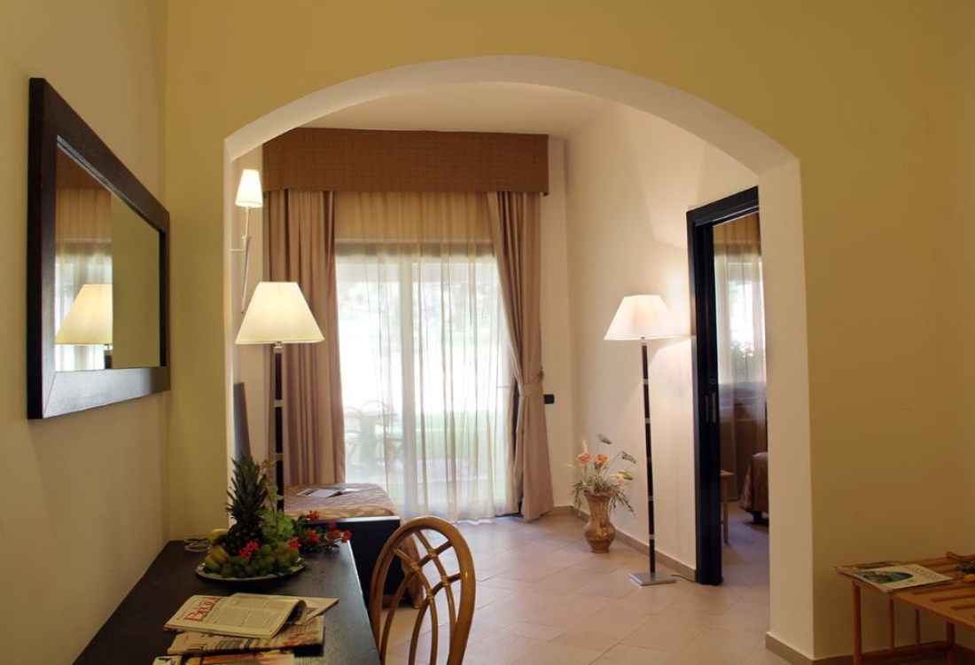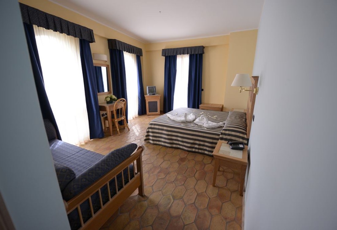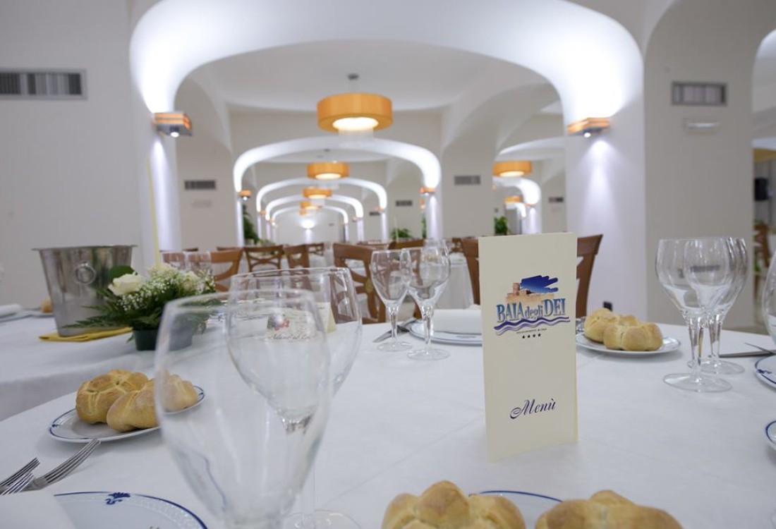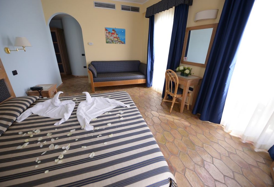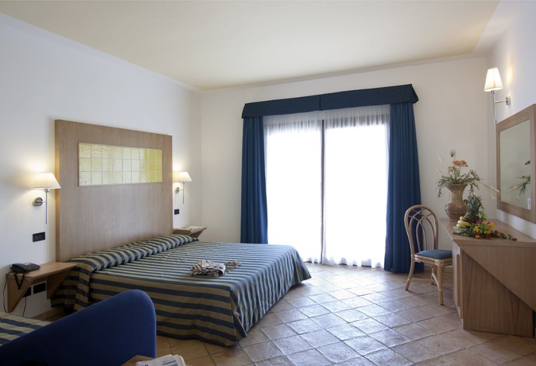 Le 200 camere del Villaggio Baia degli Dei sono arredate con gusto, quasi tutte con veranda o terrazzo, e possono essere ubicate nel corpo centrale o in strutture separate su uno o due livelli. Sono disponibili diverse tipologie di camere: Comfort per 2/4 persone (la maggior parte con divano letto a castello) ampie e confortevoli, alcune con soppalco in corpo centrale, disponibili camere Family con doppio ambiente per 4/5 persone; Classic per 2/3 persone, con arredo semplice e funzionale; Superior per 2/4 persone, in posizione privilegiata, molto spaziose e confortevoli, alcune con doppio ambiente. Tutte le sistemazioni del Villaggio Baia degli Dei sono dotate di tv, telefono, minifrigo (non allestito), cassaforte, aria condizionata, servizi con asciugacapelli. Disponibili, su richiesta, anche camere per diversamente abili.