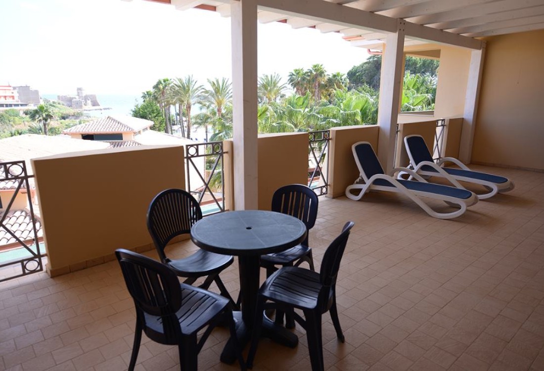 Il Villaggio Baia degli Dei affaccia direttamente sullo splendido mare di Le Castella, in provincia di Crotone, in posizione panoramica su uno degli angoli più suggestivi della costa ionica e immerso nell’incontaminata macchia mediterranea. Dista pochi minuti a piedi dal centro di “Le Castella”, antico borgo di pescatori con vista sul Castello Aragonese. Il Villaggio Baia degli Dei dispone di 3 piscine, 2 bar di cui 1 in spiaggia e 1 nella piazzetta centrale, bazar con giornali, articoli per la spiaggia e il mare, abbigliamento e prodotti tipici, anfiteatro, wi-fi free nell’area ricevimento, sedia Job per l'ingresso in mare (non previsti accompagnamenti individuali), deposito bagagli, parcheggio esterno non custodito, centro benessere con piscina coperta a temperatura ambiente, idromassaggio, sauna, bagno turco, percorso kneipp, tisaneria, area relax, massaggi e trattamenti estetici (ingresso consentito a partire dai 16 anni).