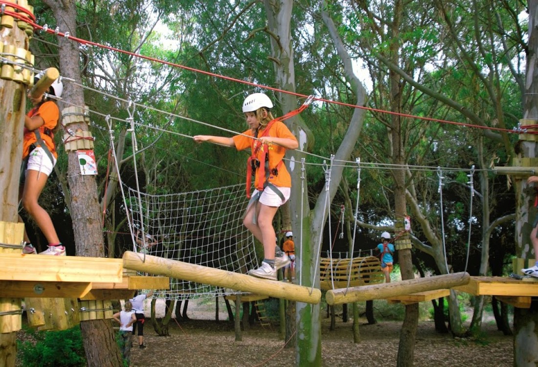 Parco avventura con percorsi sospesi tra gli alberi; Percorso natura nel bosco