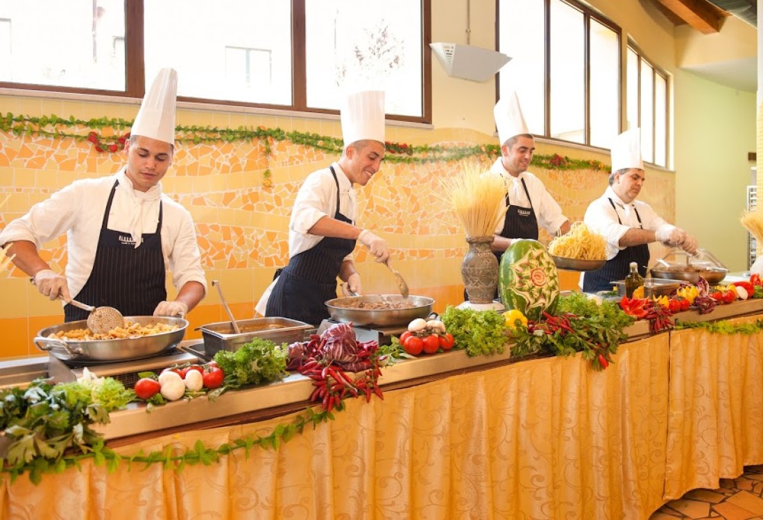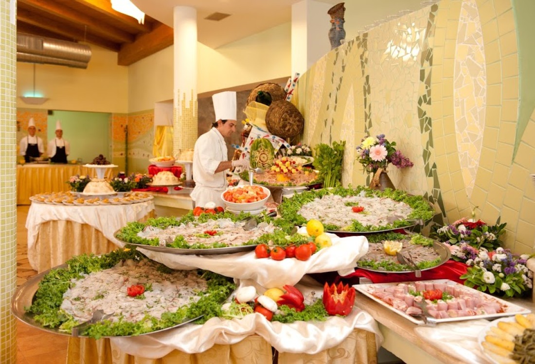 Prima colazione, pranzo e cena con buffet e show cooking, vino alla spina e acqua microfiltrata inclusi