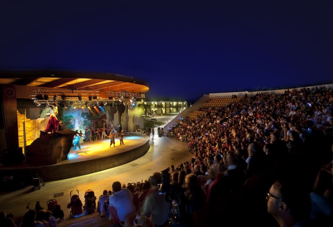 In anfiteatro spettacoli ogni sera sempre nuovi, dal musical al cabaret, dalla commedia al varietà.