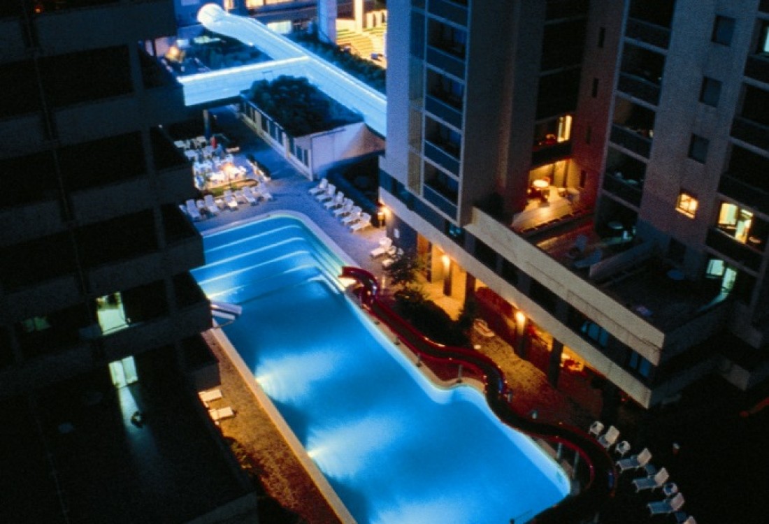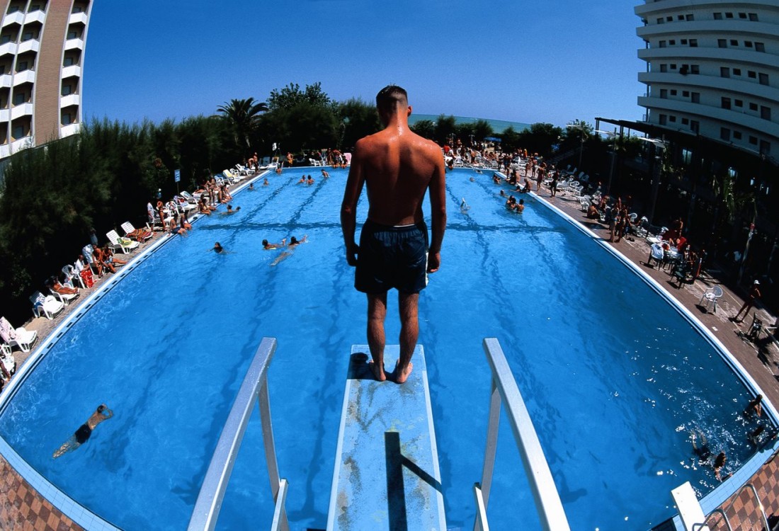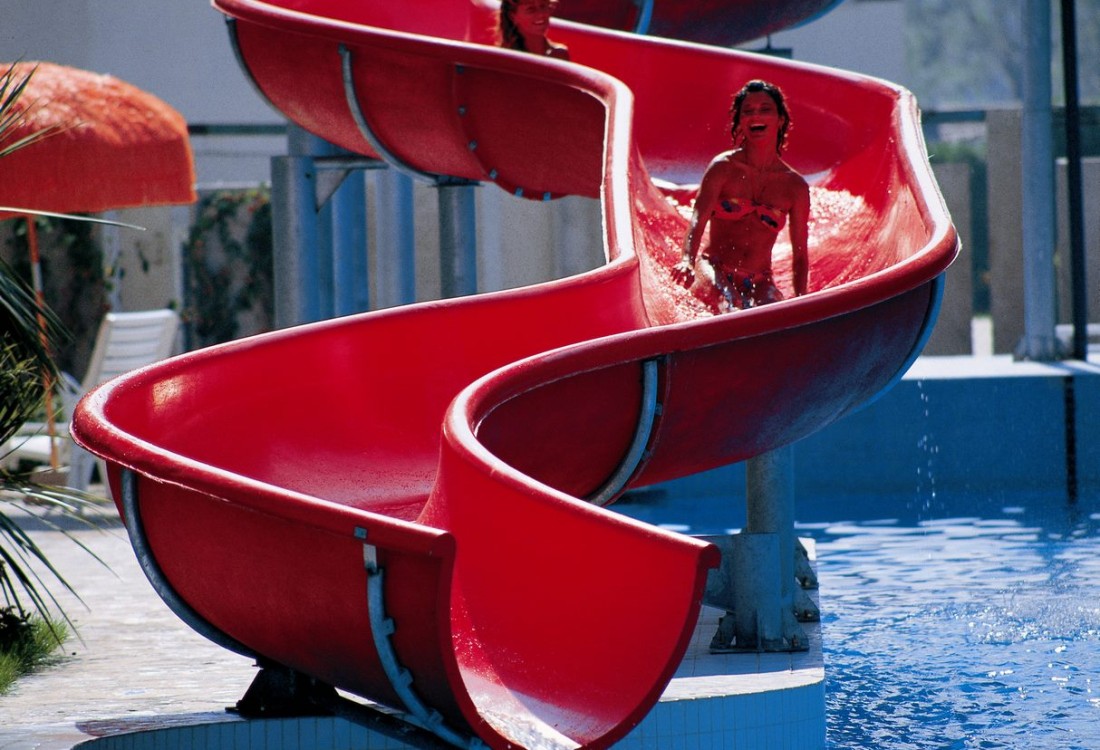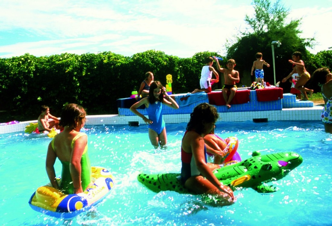 Grande piscina con acquascivoli, piscina nuoto con trampolini, piscina nel Mini Club