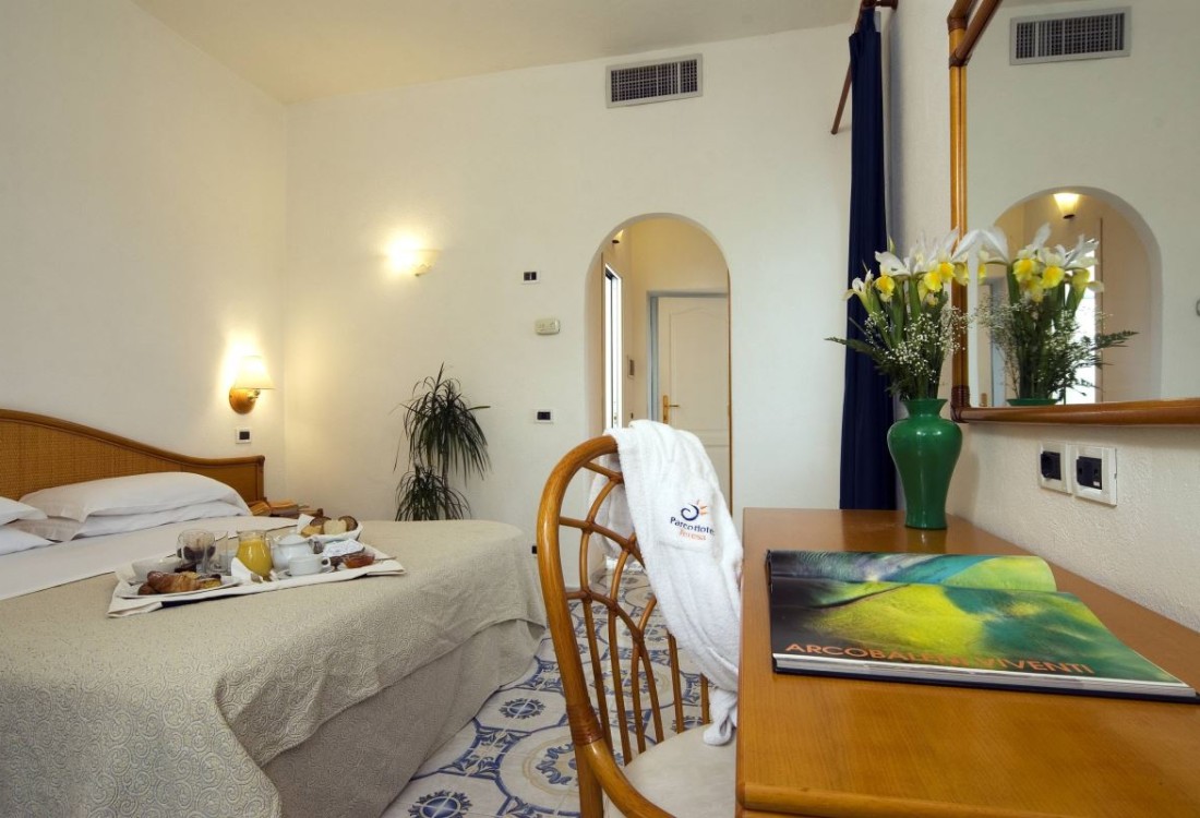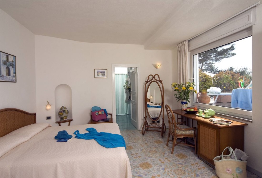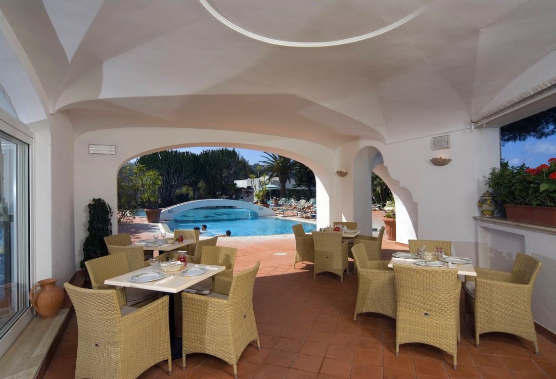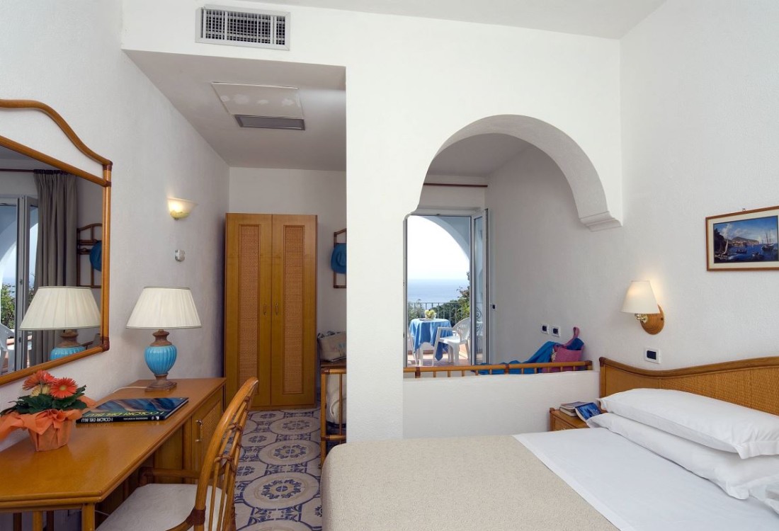 L'Hotel Terme Villa Teresa è una struttura a tre stelle superior, ubicata nel comune di Forio d'Ischia, poco lontano dalle spiagge principali di Citara e Cava dell'isola. Posizione panoramica da cui si ammirano tramonti magnifici che costituiscono il carattere distintivo della zona. La vicina Sant'Angelo, centro della movida elitaria isolana, ed il corso principale di Forio allieteranno le serate degli ospiti dell'Hotel Terme Villa Teresa, che potranno godersi lunghe passeggiate ed ammirare le bellezze naturali e storiche di cui i corsi sono dotati. Un efficiente e moderno reparto termale farà si che gli ospiti trascorrano il loro soggiorno in totale relax e spensieratezza, offrendo trattamenti termali al viso ed al corpo, massaggi e pacchetti anche personalizzabili. Grazie alla convenzione con il servizio sanitario nazionale è possibile, inoltre, effettuare cicli di fango-balneo terapia o di inalazioni termali direttamente all'interno della struttura dove, un personale altamente qualificato, si prenderà cura delle esigenze di ogni ospite. L'hotel mette a disposizione dei propri clienti due piscine termali, di cui una interna e l'altra esterna, ed ampi solarium attrezzati. Le camere dell'hotel sono dotate di ogni comfort, alcune collocate nel corpo principale, altre invece nel corpo distaccato presente all'interno del medesimo parco, dispongono di balcone con vista mare o vista montagna, altre invece sono posizionate direttamente sulla piscina.