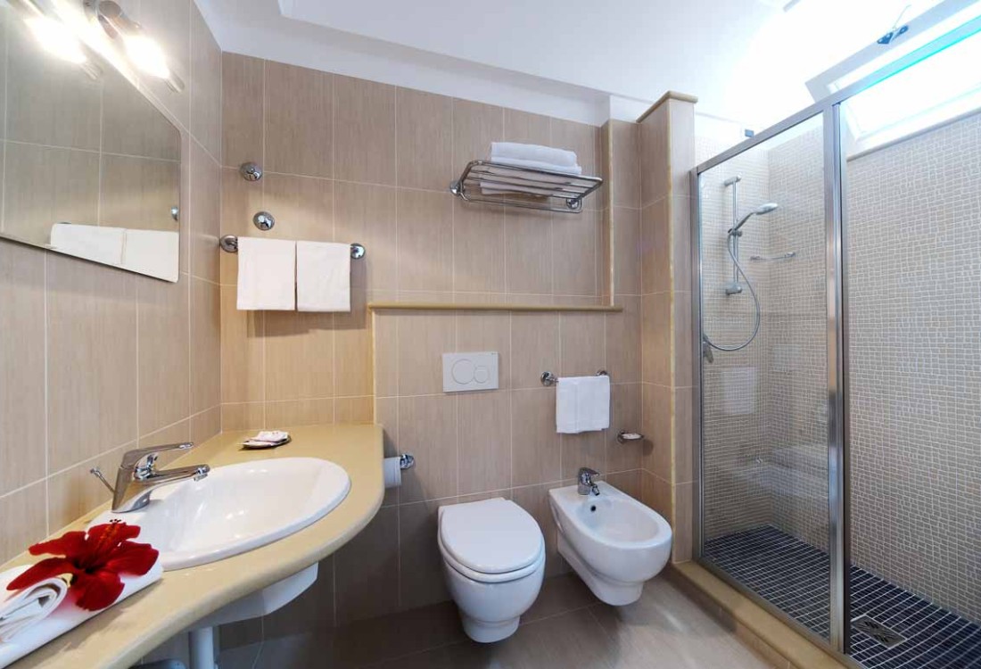Bagno: doccia con tenda classica (per le camere Classic), box doccia (per le camere Comfort).