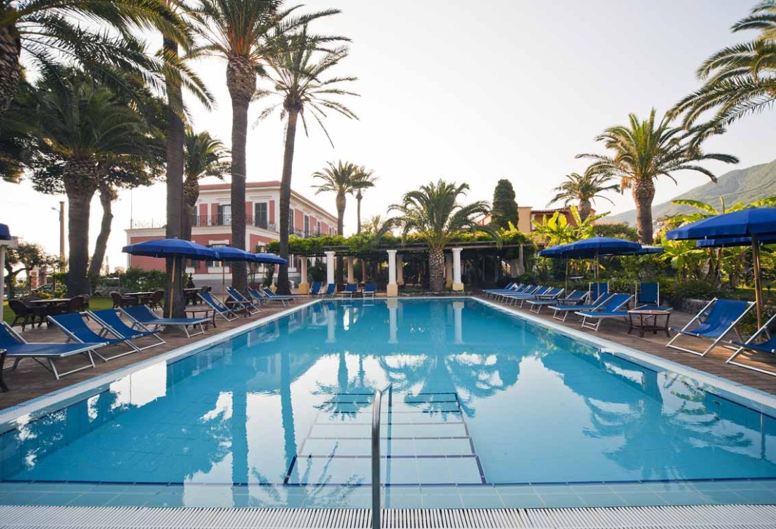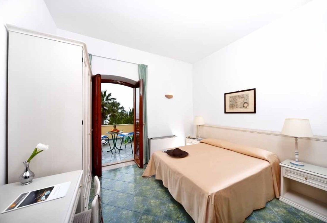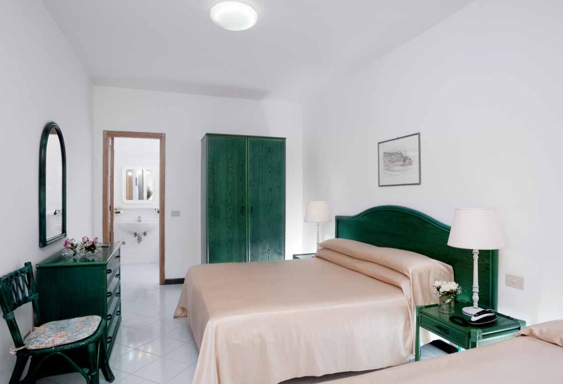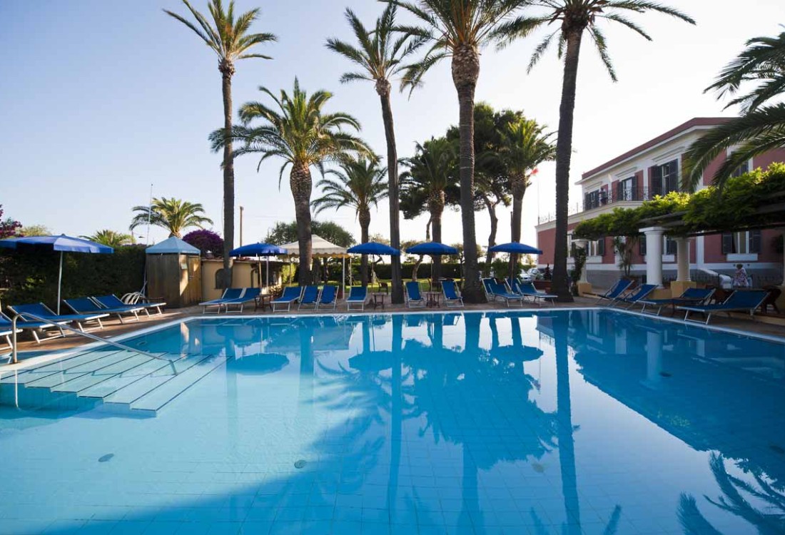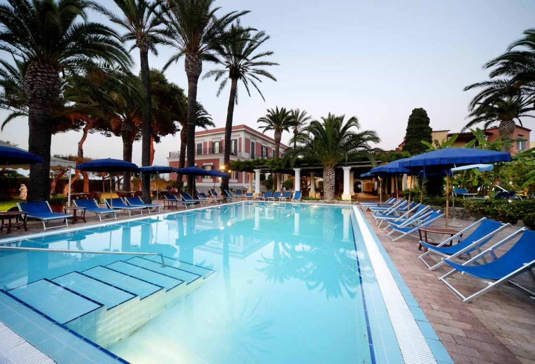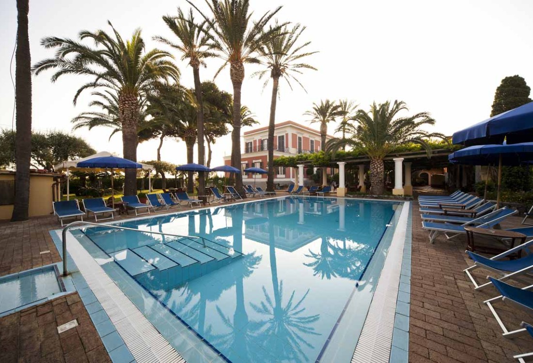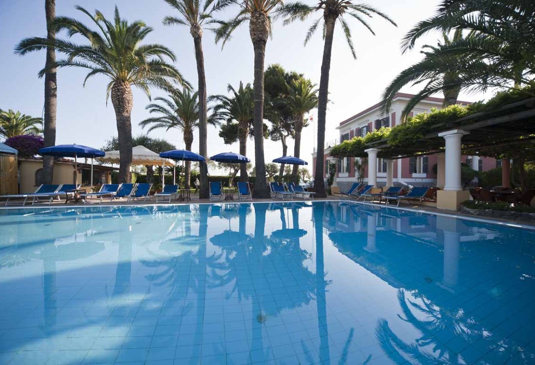 Le camere dell’albergo sono dislocate in tre "zone" in cui è suddiviso l'hotel: La Villa Svizzera, Il Giardino delle Fonti e La Colombaia, tutti i corpi fabbrica sono molto vicini tra loro. La maggior parte delle camere ha la vista sul giardino interno dell'hotel e dispongono di balcone o terrazzo, alcune Classic hanno la vista mare; le Superior, localizzate nella Villa Svizzera, hanno la più bella vista mare dell'hotel. Le tipologie di camere Classic presenti sono: Singola mq 10-12, Doppia Uso Singola, Doppia, Tripla, mq 17-29. Le camere Comfort con vista parco/giardino/interna sono più grandi delle Classic e dotate di un arredo maggiormente confortevole, i bagni sono dotati di moderni box doccia. Le Comfort sono localizzate nel Giardino delle Antiche Fonti e nella Colombaia e sono dotate di balcone o terrazzino, tipologie presenti: Doppie: 15-20 mq. Le camere Superior sono localizzate nell'edificio della Villa Svizzera, alcune hanno la vista mare per la quale è richiesto un supplemento, altre sono rivolte sul giardino/parco dell'hotel. Tutte le Superior sono generosamente dimensionate ed hanno arredi moderni e confortevoli, il bagno è munito di box doccia. Le tipologie presenti: Singole 16-17 mq - Doppie, triple 21-30 mq.