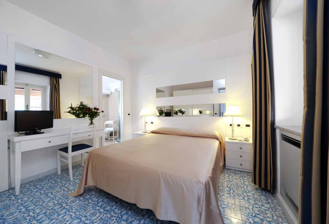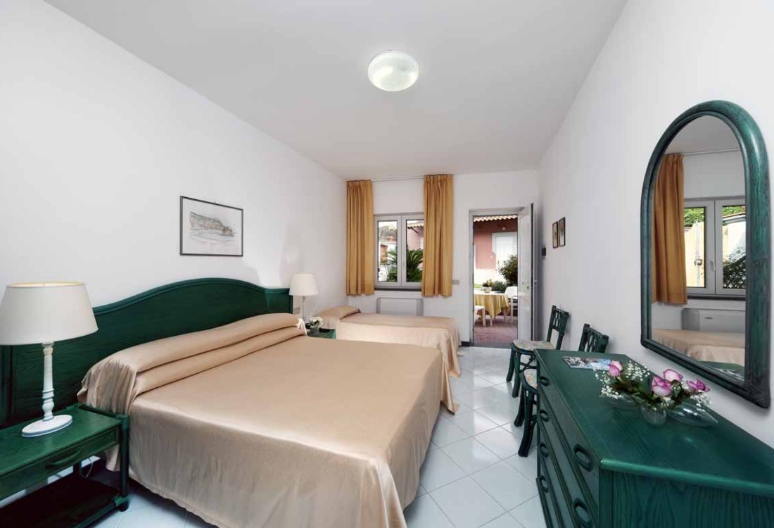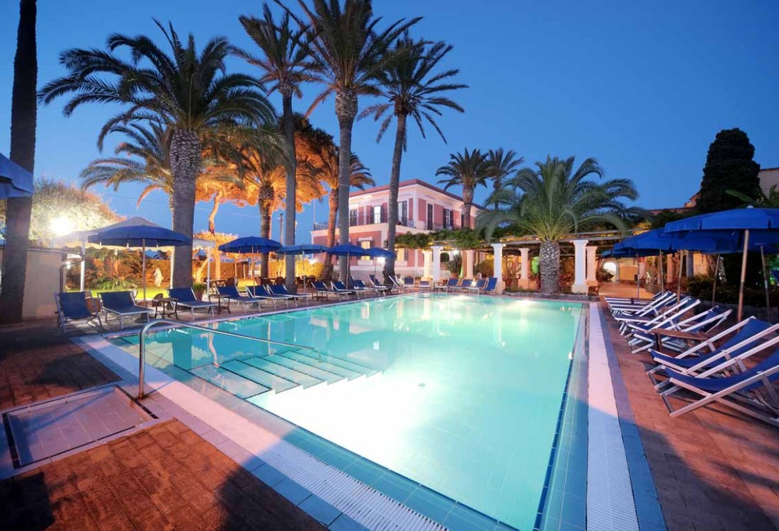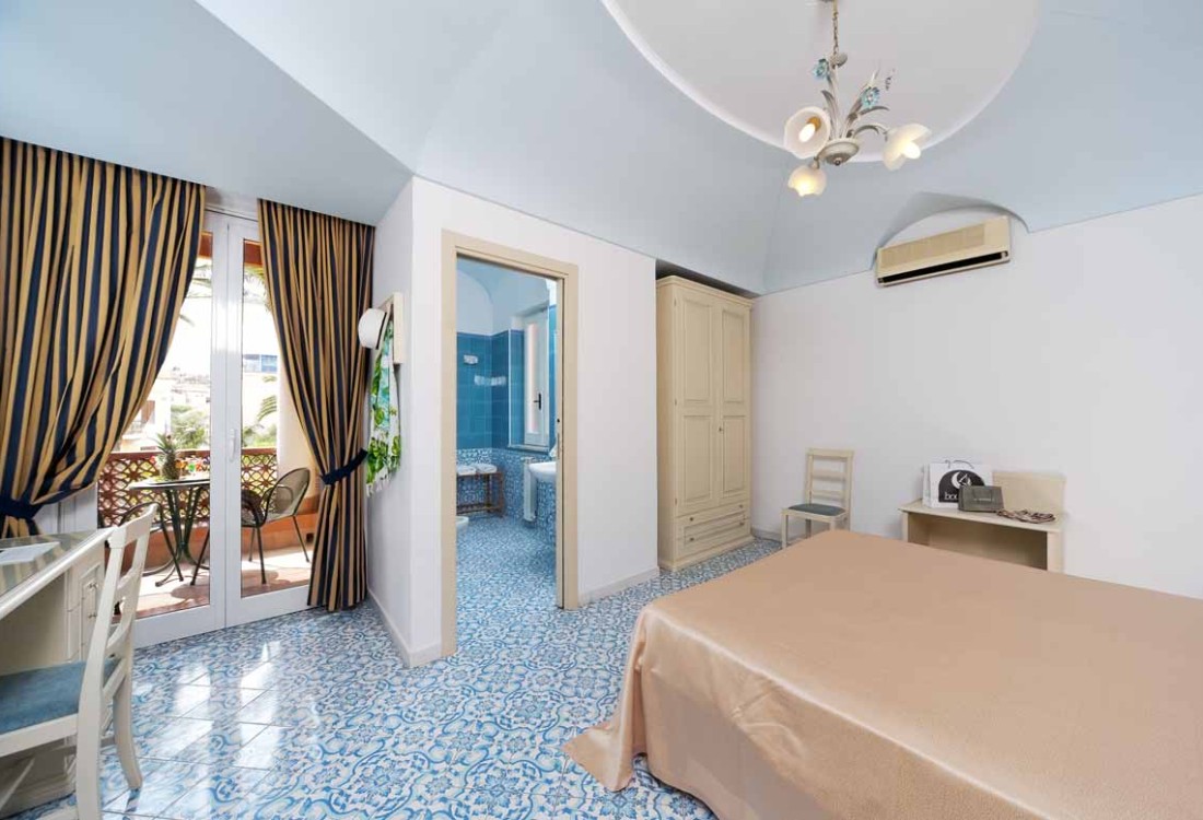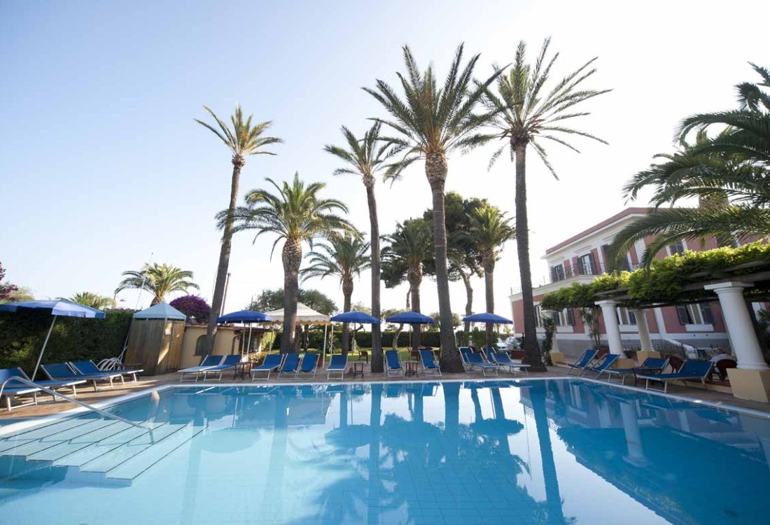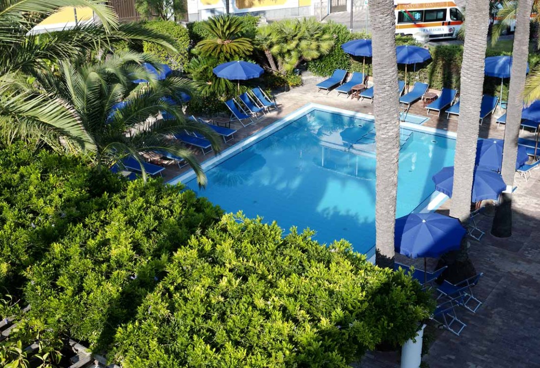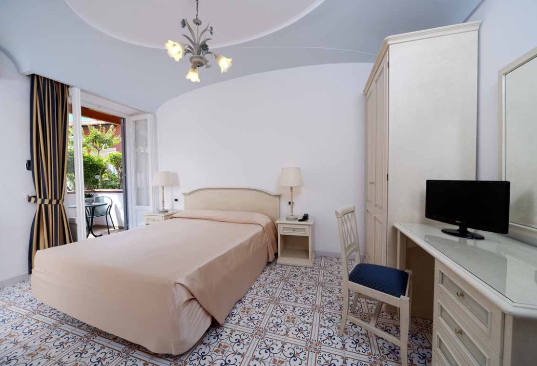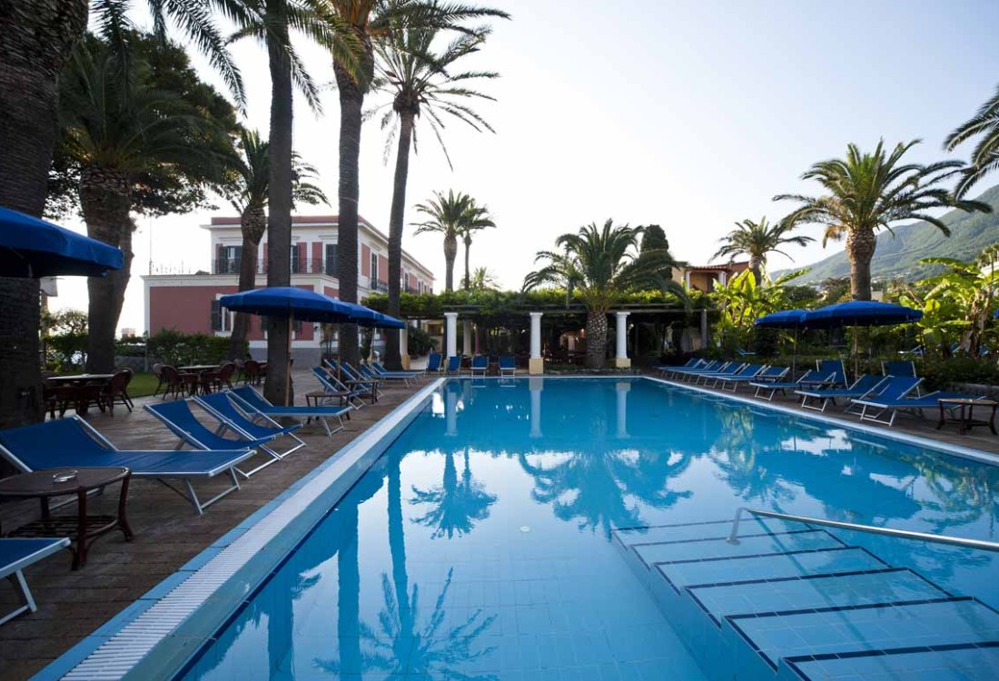 Le camere dell’albergo sono dislocate in tre "zone" in cui è suddiviso l'hotel: La Villa Svizzera, Il Giardino delle Fonti e La Colombaia, tutti i corpi fabbrica sono molto vicini tra loro. La maggior parte delle camere ha la vista sul giardino interno dell'hotel e dispongono di balcone o terrazzo, alcune Classic hanno la vista mare; le Superior, localizzate nella Villa Svizzera, hanno la più bella vista mare dell'hotel. Le tipologie di camere Classic presenti sono: Singola mq 10-12, Doppia Uso Singola, Doppia, Tripla, mq 17-29. Le camere Comfort con vista parco/giardino/interna sono più grandi delle Classic e dotate di un arredo maggiormente confortevole, i bagni sono dotati di moderni box doccia. Le Comfort sono localizzate nel Giardino delle Antiche Fonti e nella Colombaia e sono dotate di balcone o terrazzino, tipologie presenti: Doppie: 15-20 mq. Le camere Superior sono localizzate nell'edificio della Villa Svizzera, alcune hanno la vista mare per la quale è richiesto un supplemento, altre sono rivolte sul giardino/parco dell'hotel. Tutte le Superior sono generosamente dimensionate ed hanno arredi moderni e confortevoli, il bagno è munito di box doccia. Le tipologie presenti: Singole 16-17 mq - Doppie, triple 21-30 mq.
