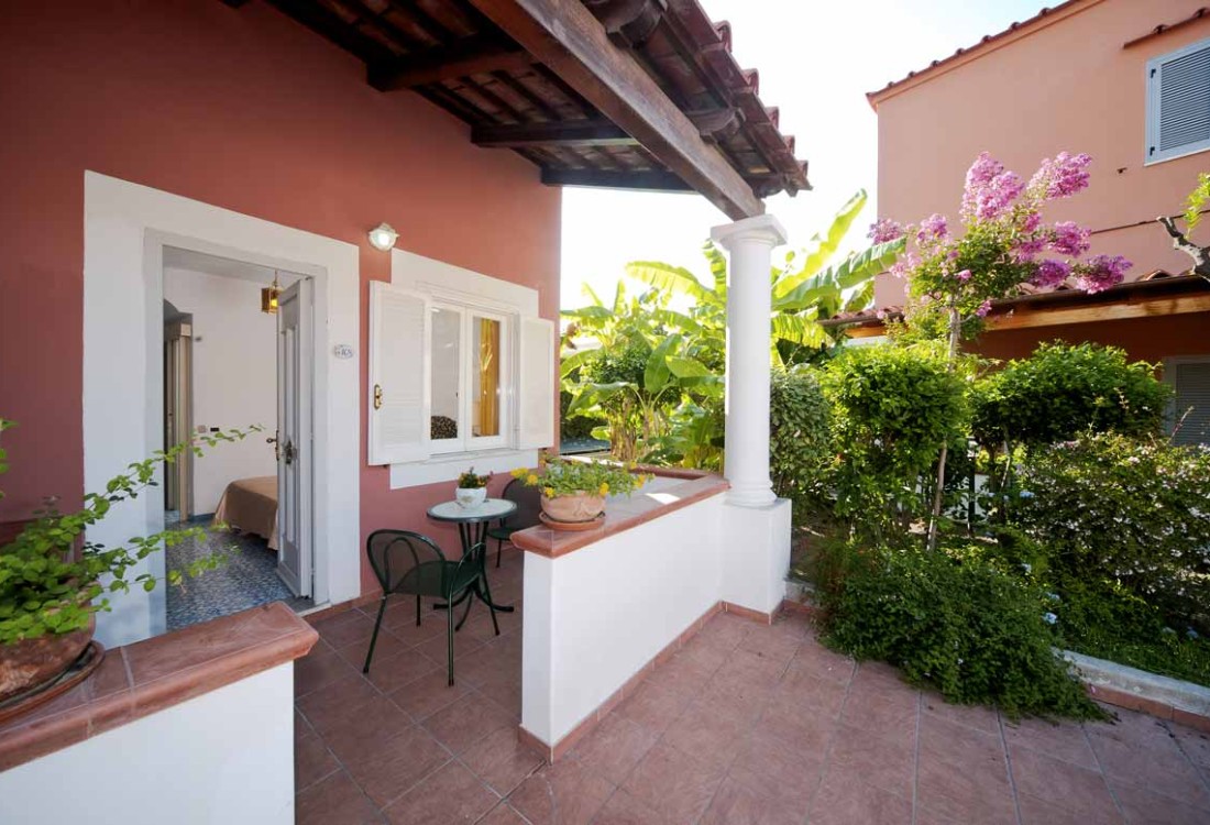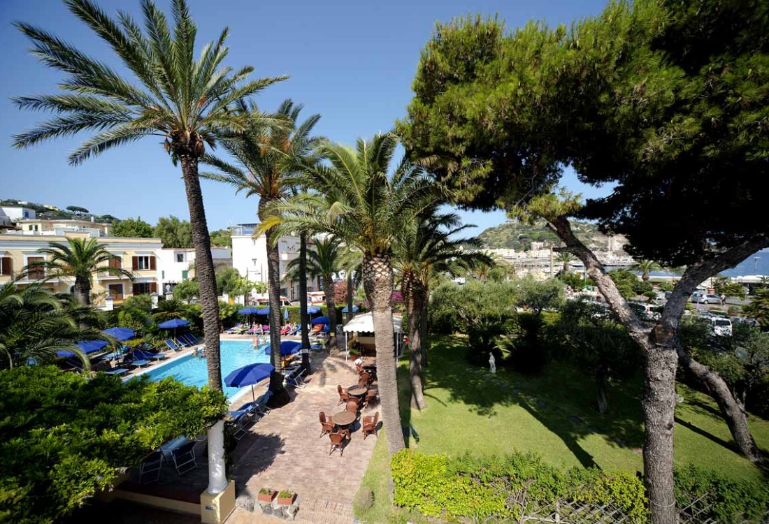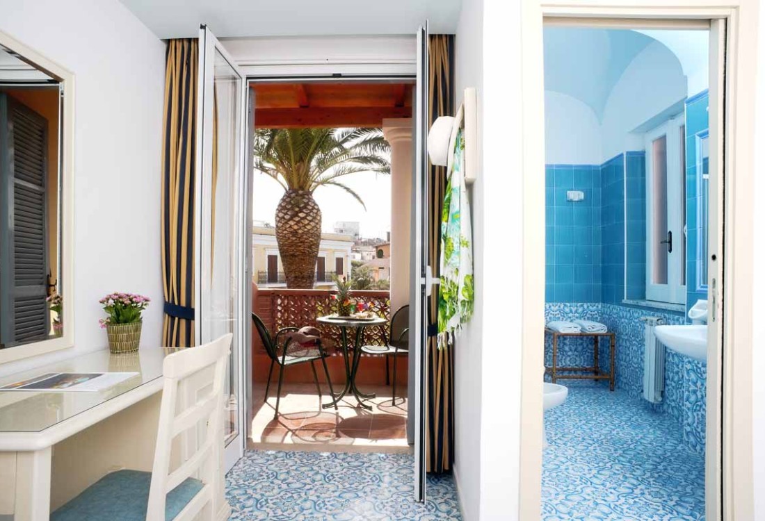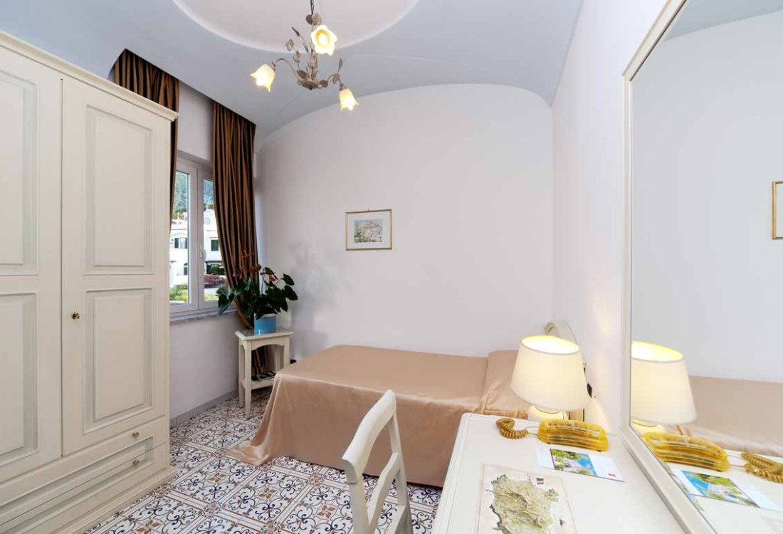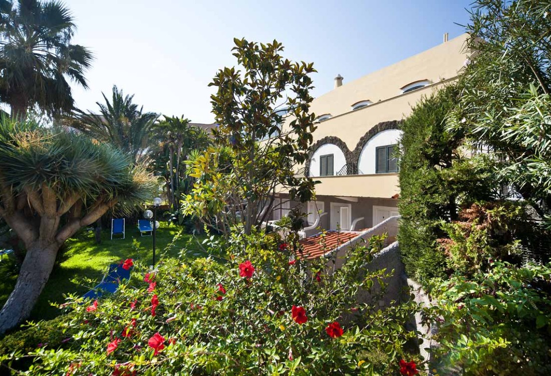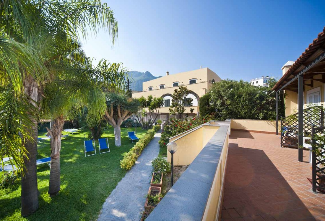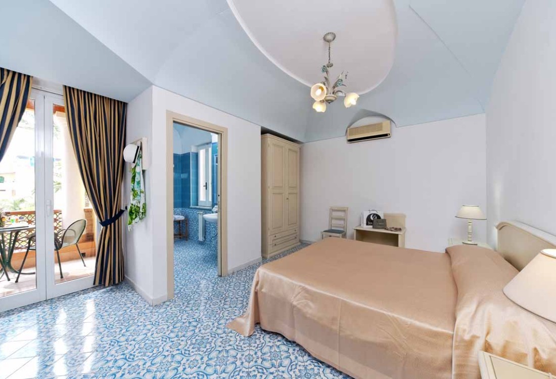 Le camere dell’albergo sono dislocate in tre "zone" in cui è suddiviso l'hotel: La Villa Svizzera, Il Giardino delle Fonti e La Colombaia, tutti i corpi fabbrica sono molto vicini tra loro. La maggior parte delle camere ha la vista sul giardino interno dell'hotel e dispongono di balcone o terrazzo, alcune Classic hanno la vista mare; le Superior, localizzate nella Villa Svizzera, hanno la più bella vista mare dell'hotel. Le tipologie di camere Classic presenti sono: Singola mq 10-12, Doppia Uso Singola, Doppia, Tripla, mq 17-29. Le camere Comfort con vista parco/giardino/interna sono più grandi delle Classic e dotate di un arredo maggiormente confortevole, i bagni sono dotati di moderni box doccia. Le Comfort sono localizzate nel Giardino delle Antiche Fonti e nella Colombaia e sono dotate di balcone o terrazzino, tipologie presenti: Doppie: 15-20 mq. Le camere Superior sono localizzate nell'edificio della Villa Svizzera, alcune hanno la vista mare per la quale è richiesto un supplemento, altre sono rivolte sul giardino/parco dell'hotel. Tutte le Superior sono generosamente dimensionate ed hanno arredi moderni e confortevoli, il bagno è munito di box doccia. Le tipologie presenti: Singole 16-17 mq - Doppie, triple 21-30 mq.