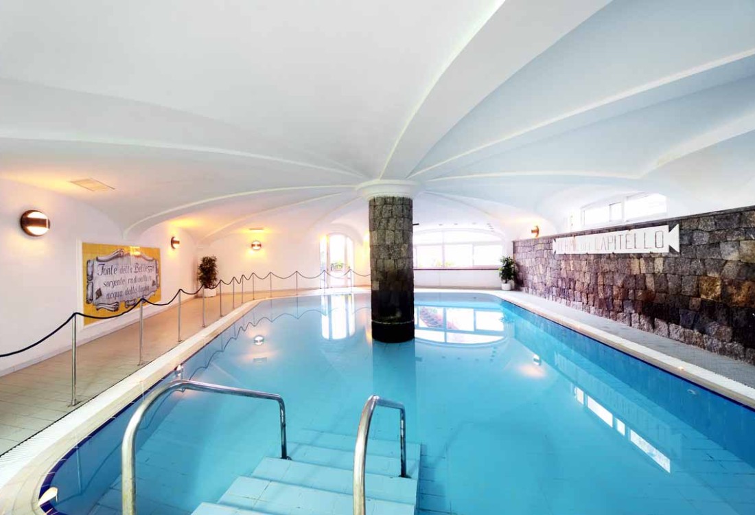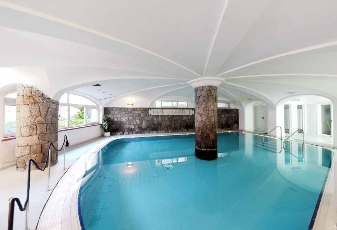 Piscina termale coperta dotata di idromassaggio temperatura 32-34°.