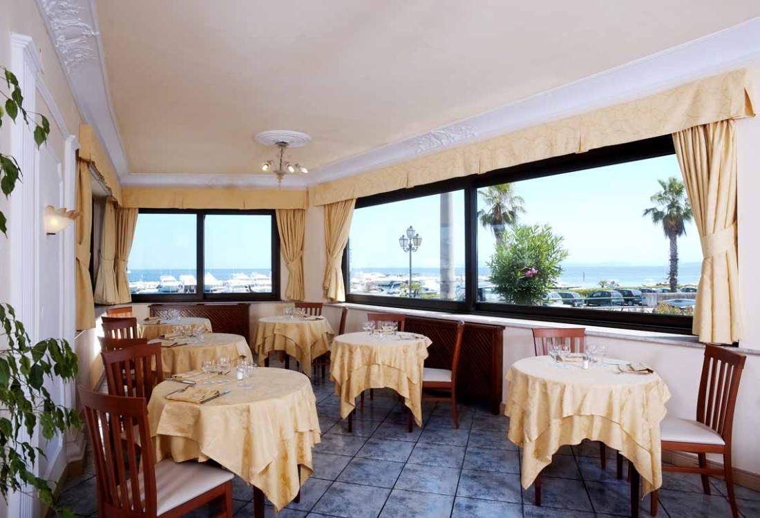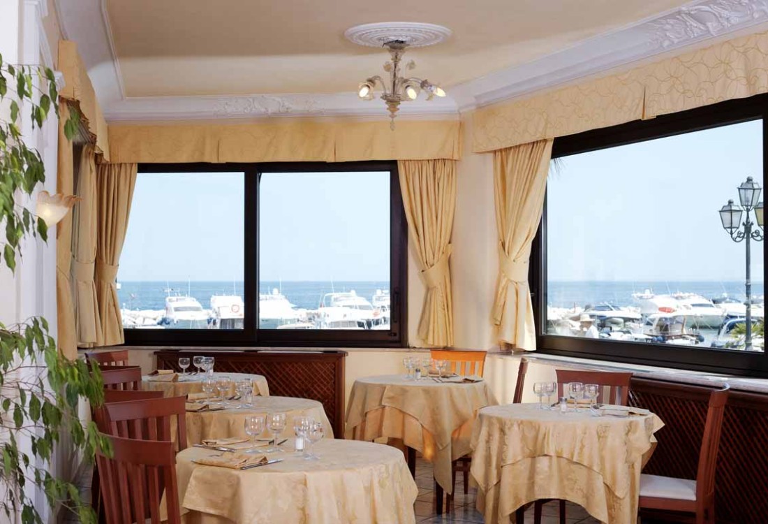 L'ampia sala ristorante, che gode di uno splendido panorama sul mare di Lacco Ameno, accoglie gli ospiti già dal mattino con l'ampio buffet di prima colazione, sul quale spunta, tra le tante cose, la piccola pasticceria fatta in casa. Il pranzo e la cena vengono serviti con un menù a scelta composto da piatti della tradizione ischitana e partenopea. Sempre presente, inoltre, un ricco buffet di antipasti, verdure ed insalate.